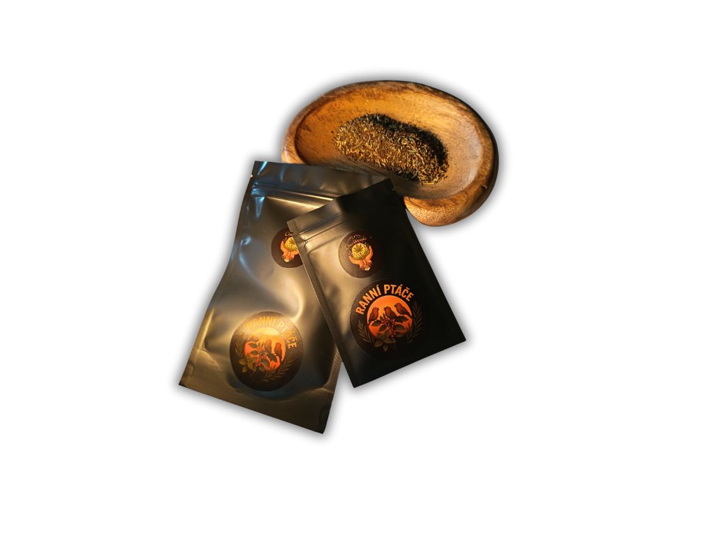 Ranní ptáče je svěží bylinná směs vytvořená pro ty, kteří chtějí nastartovat den čistě přírodní cestou. Máta a rozmarýn podporují bdělost a koncentraci, zatímco jemný nádech kávy směsi dodává energizující aroma.
